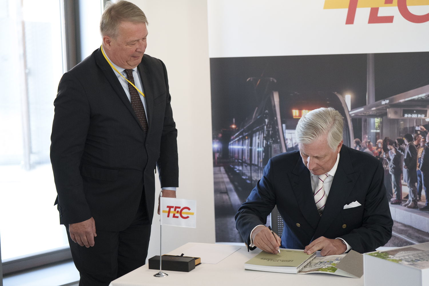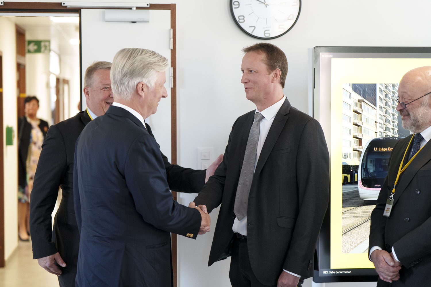 Accueilli au Centre de maintenance et de remisage du tram de Liège (CDMR) dès 10h, le Roi a été reçu par Jean-Michel Soors, Administrateur général du TEC, Jacques Defer, Président du Conseil d'Administration ff., Vincent Urbain, Administrateur Général adjoint, Michel Schoonbroodt, Directeur exécutif ff. de la Business Unit Liège-Verviers et Stéphane Thiery, Directeur du Marketing. Après une brève présentation des enjeux de la mobilité en Wallonie et une visite attentive du poste de commande centralisé bus-tram, Sa Majesté le Roi est montée à bord du tram et a pris les commandes en direction du centre-ville.