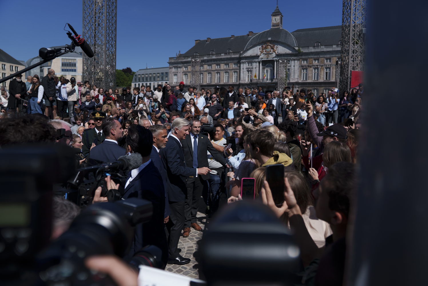 Enthousiaste, la population liégeoise est venue en nombre pour célébrer l’arrivée du tram royal au cœur de la Cité ardente. Les autorités communales, provinciales et régionales étaient également présentes pour saluer le Roi sur la Place Saint-Lambert.